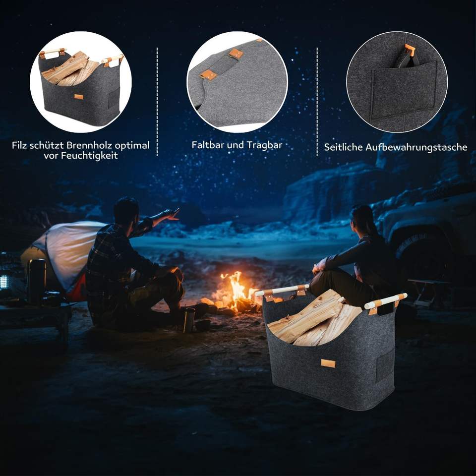 Germany vendita calda durevole Non tessuto da viaggio borsa da trasporto personalizzata pieghevole in feltro legna da ardere cestini con manici in legno