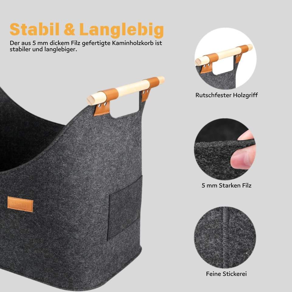 Nome del prodotto:Borsa pieghevole in feltro legna da ardere cestini con manici in legno