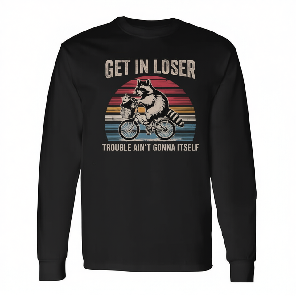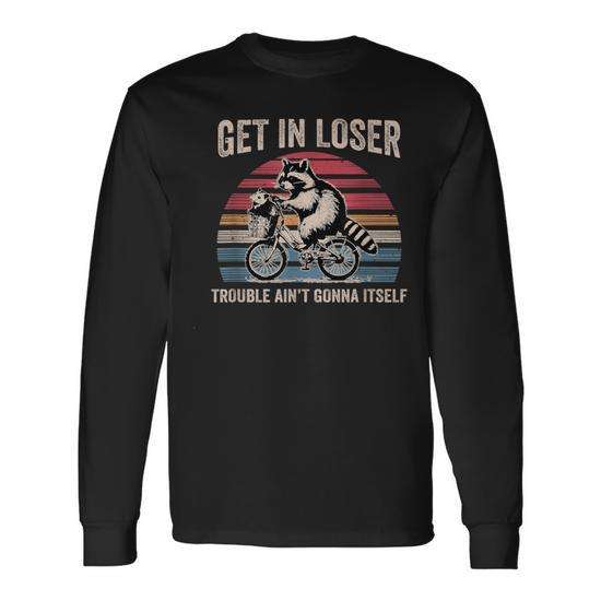 Get In Loser Raccoon Opossum T-shirt a maniche lunghe Il guaio non si farà da sé
