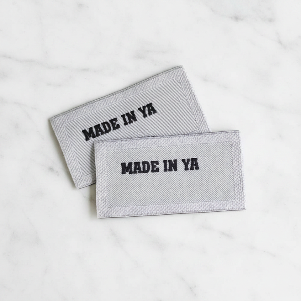Etichetta Geweven ha incontrato Hoge dichheid Op Maat Gemaakt Merk Logo Uiteinde Gevouwen Borduurwerk Kleding tag Keper Rand Kledingaccessoi