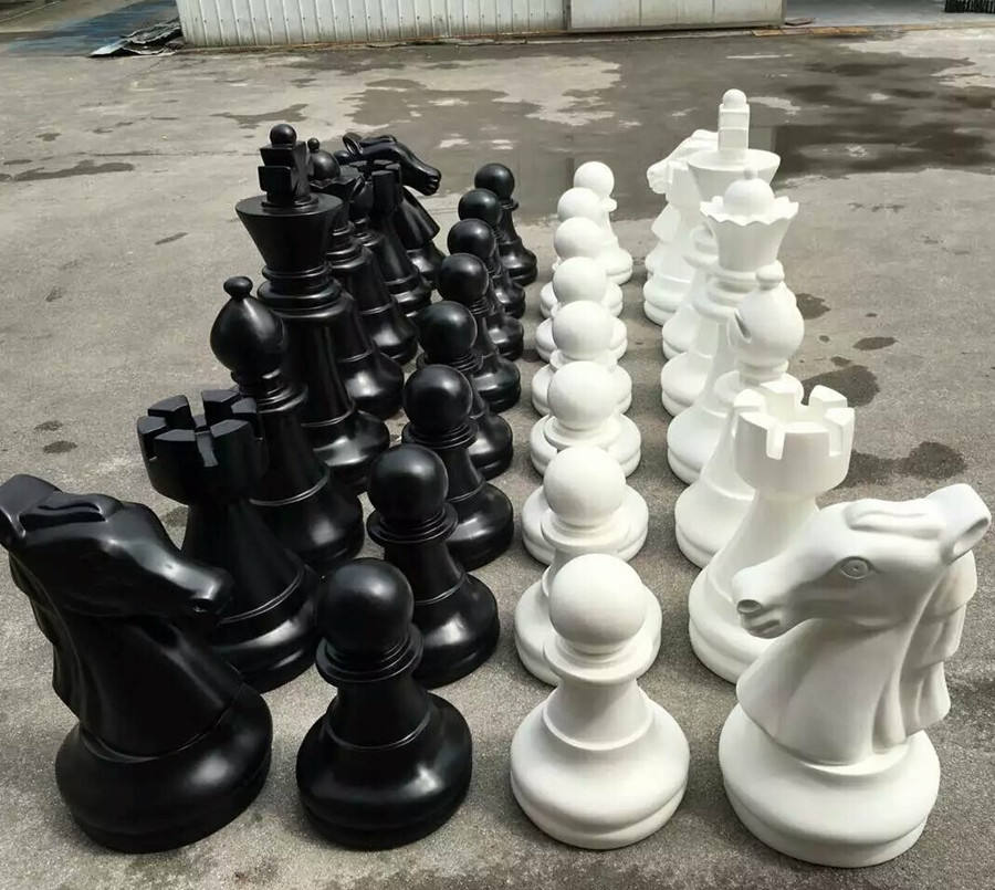 Set di scacchi giganti e statua in resina mostra gioco all'aperto e finestra decorativa per eventi di festa scultura arte tema