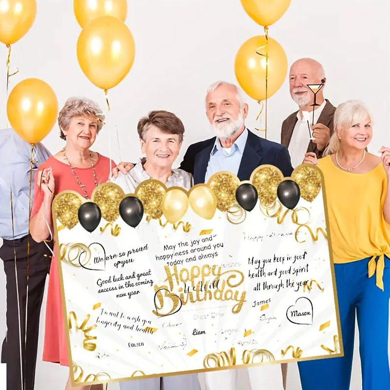 Giant Eco-Friendly Paper Birthday Cards with Gold Stamping for Birthday Parties-Customizable Guestbook Messages & Names