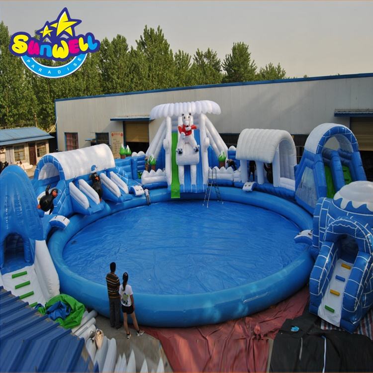 Gonfiabile parco acquatico di divertimenti diapositive con piscina