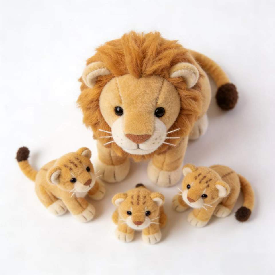 Peluche Gigante Realistico di Leonessa con 3 Cuccioli di Leone, Set Famiglia di Animali Imbottiti Sonic, Giocattoli Interattivi Morbidi della Giungla