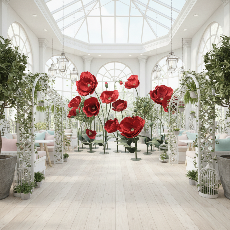 Fiori di Papavero Artificiali Giganti Rossi in Carta Crespa, Perfetti per Decorazioni di Matrimoni, Feste e Festività