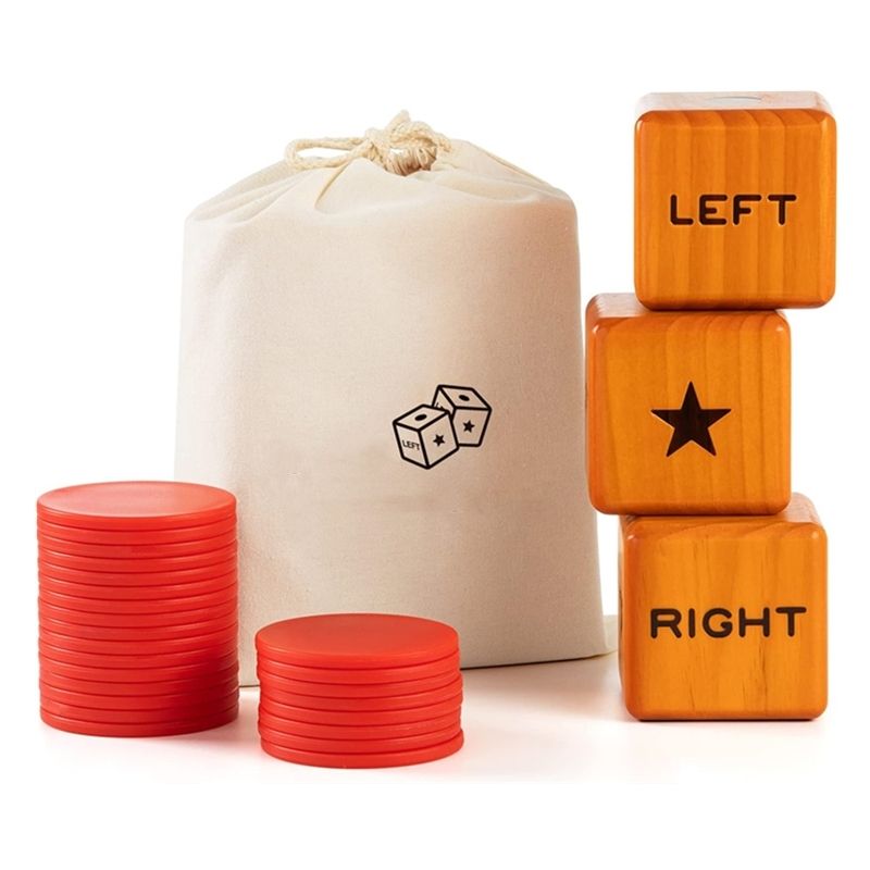 Giant Right Center Left Dice Game with 24 Large Chips Carry Bag Giant Wooden Outdoor Lawn Dice Game for Family