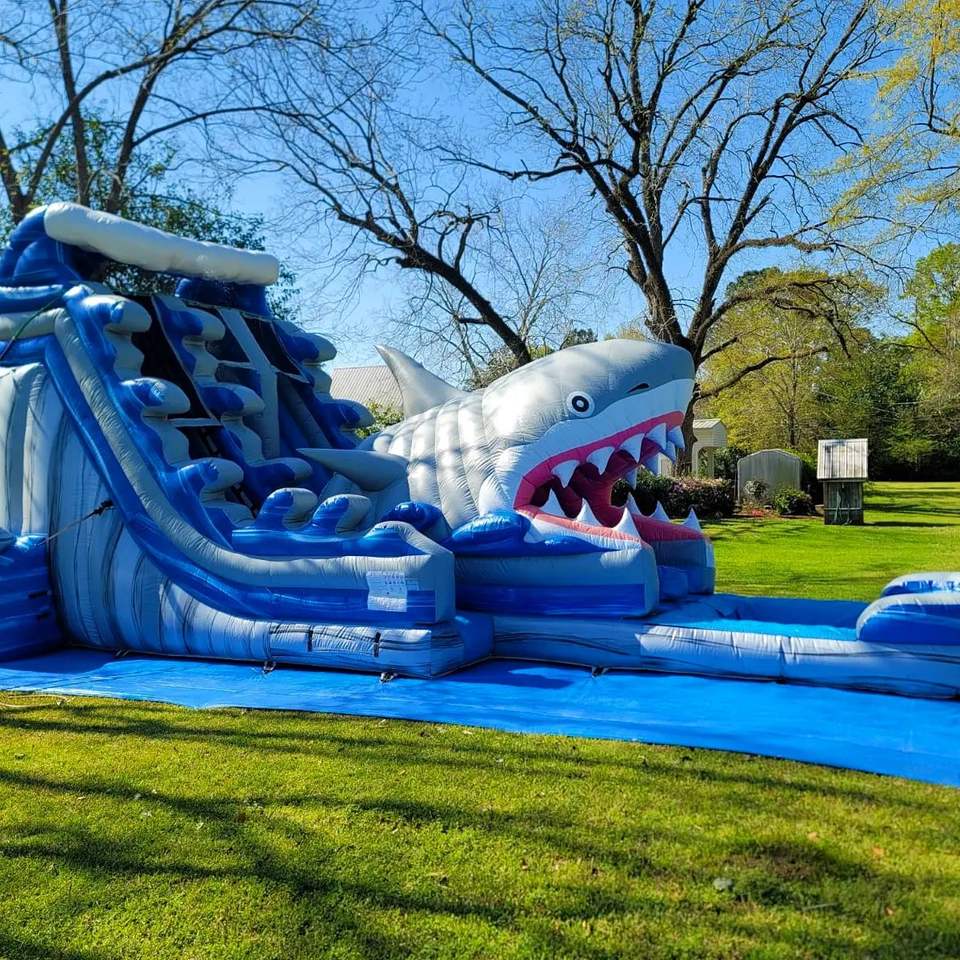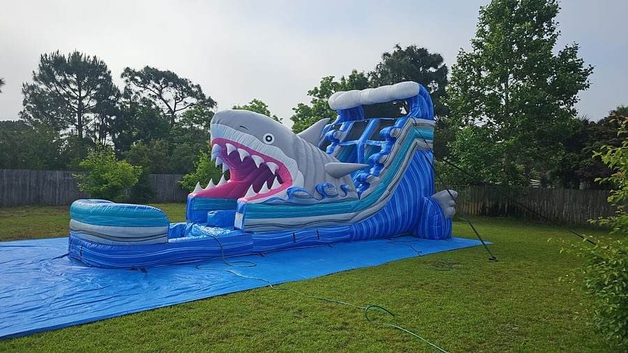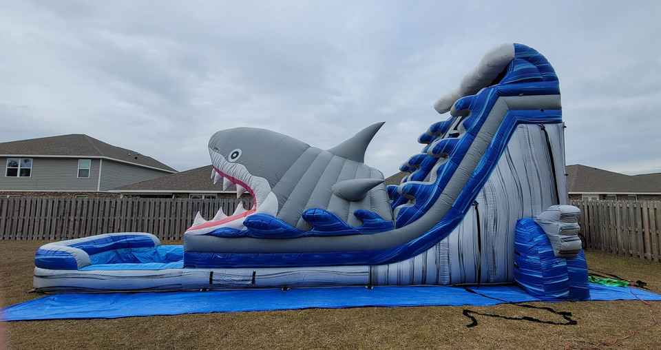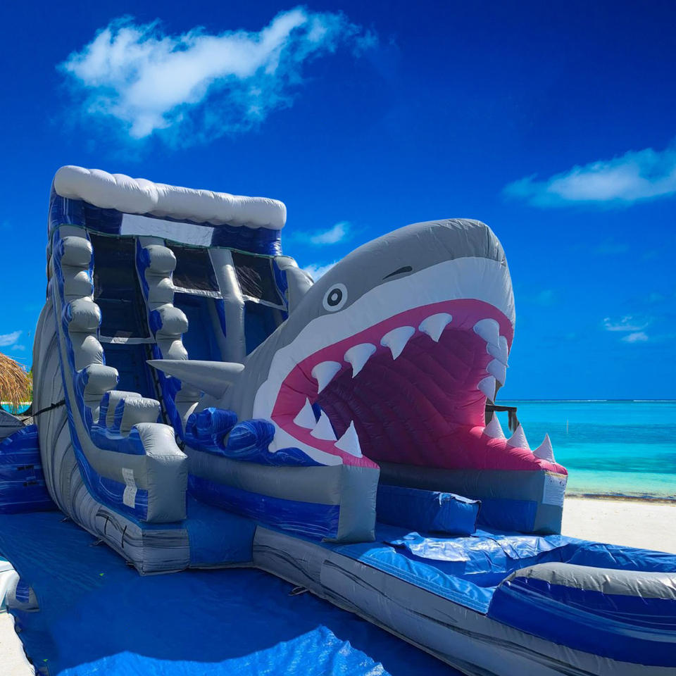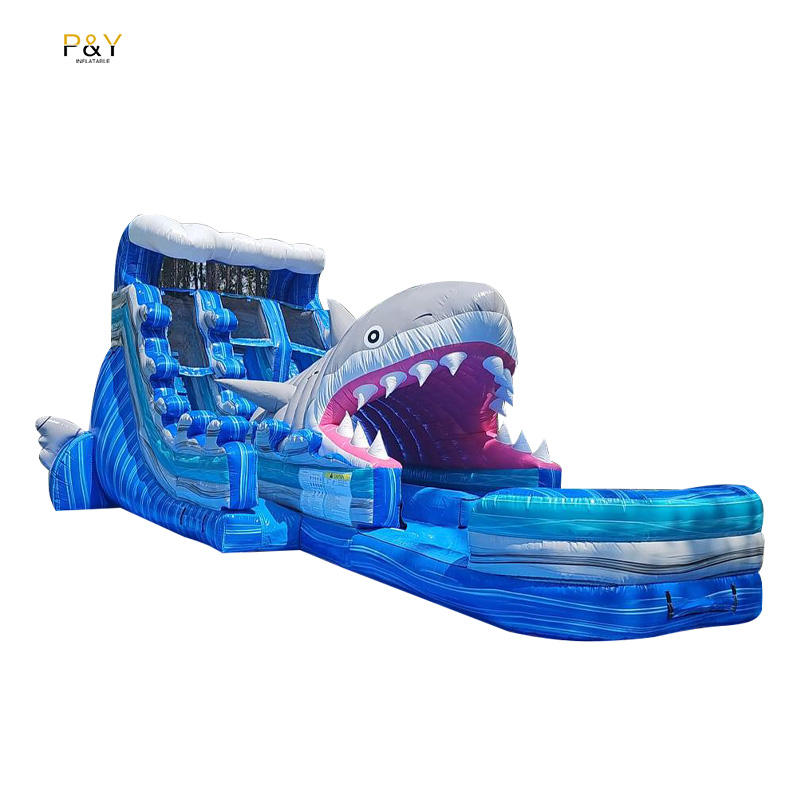 Squalo gigante scivolo gonfiabile ad acqua di squalo scivolo con piscina per bambini e adulti