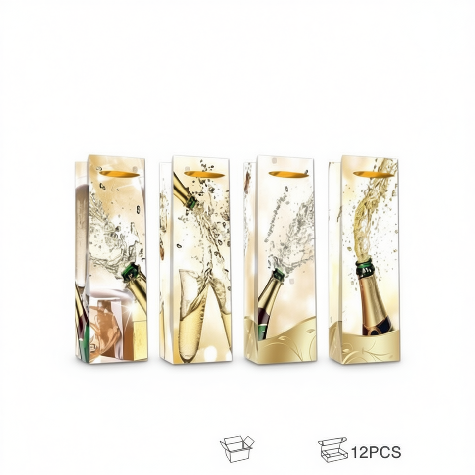 Sacchetti regalo, scatole per bottiglie di vino, 12 pezzi, design champagne, per confezioni regalo per feste