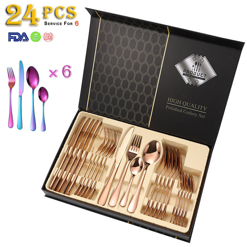 Nome del prodotto:Portatile 24 PCS In Acciaio Inox Oro Set Da Tavola