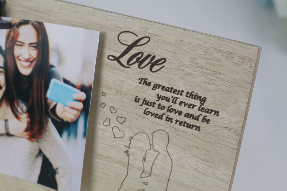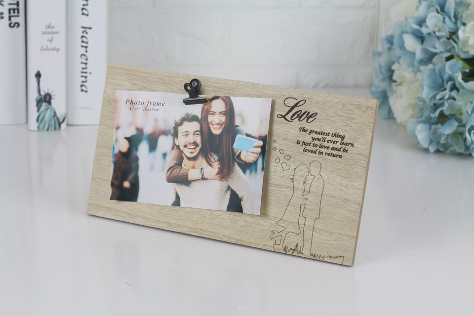Regalo per amicizia Laser disegni personalizzati e parole in legno massello cornice per foto con Clip