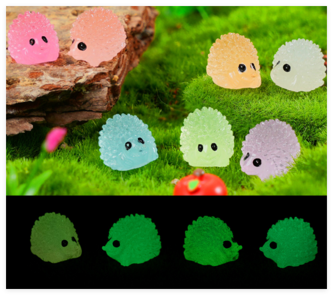 Gifts and Crafts Decoration Miniature Garden 3D Cartoon Resin Hedgehog Luminous Glowing in Dark Animals Blind Bag Surprise Toy