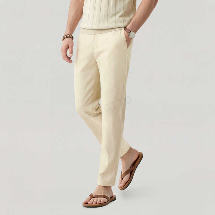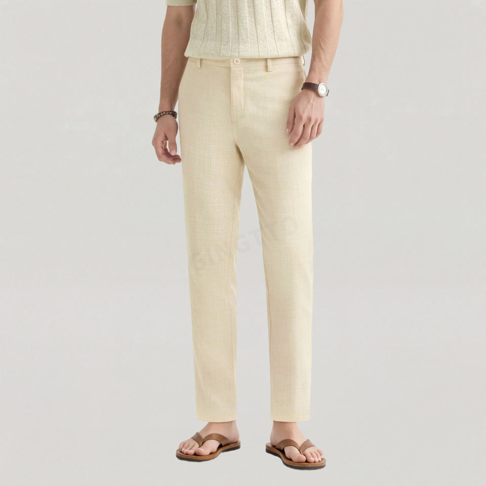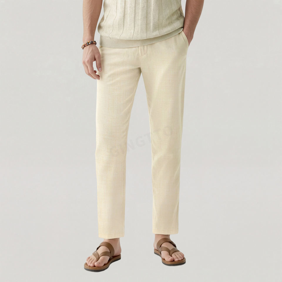 Gingtto Breathable High Quality Beige Comfortable Wholesale Custom Summer Linen Pants Men