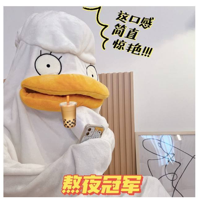 Gintama Elizabeth White Duck Pajamas for Women, Winter One-piece Funny Couple Sleeping Bags, Cute Cartoon Flannel Bathrobes