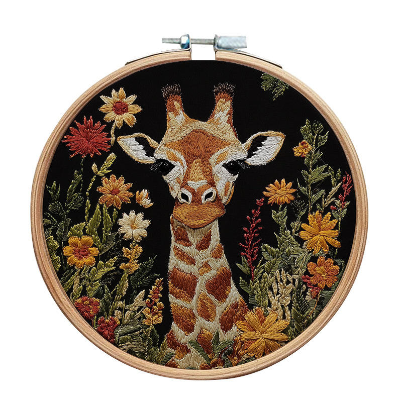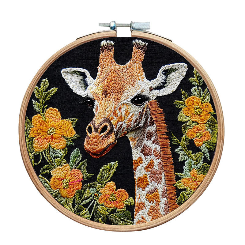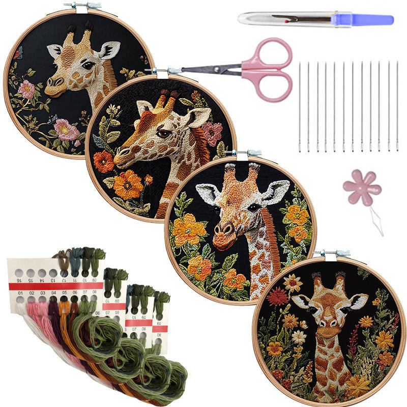 Kit per punto croce con ricamo a giraffa Kit per punto croce stampato per principianti adulti con Kit di ricamo a cerchio e istruzioni