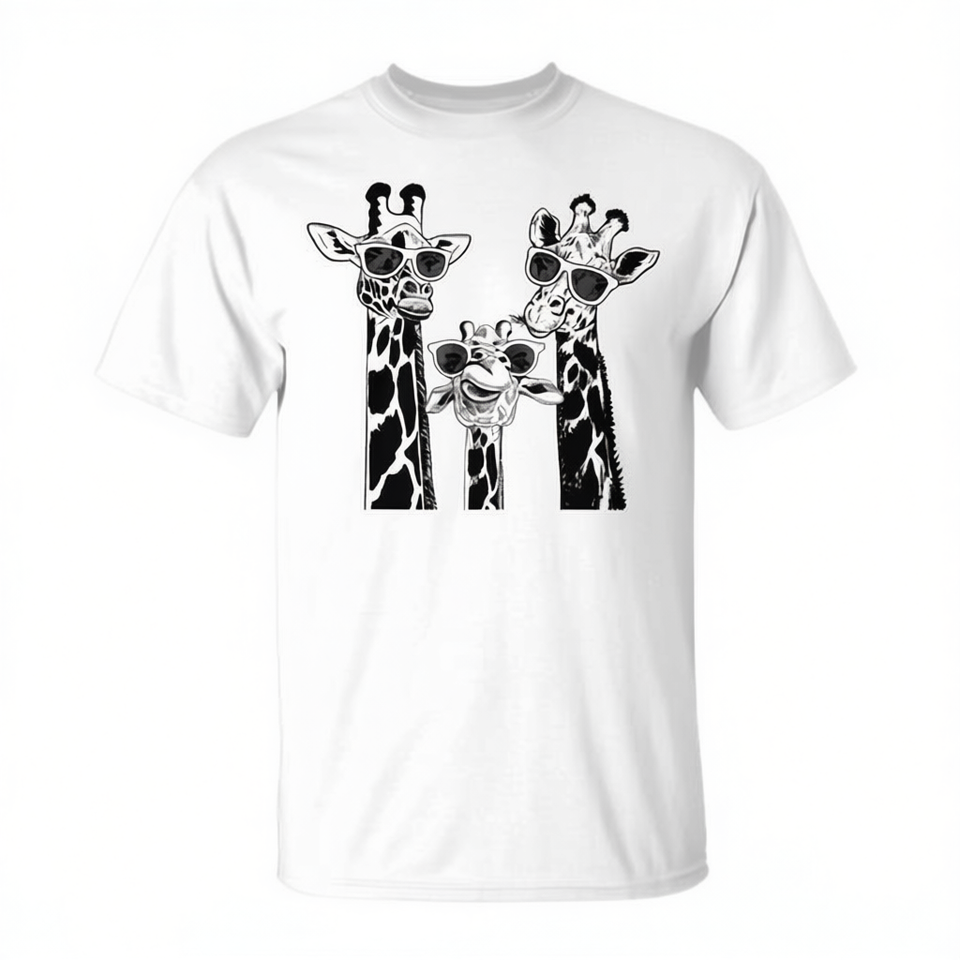 T-shirt coordinata per la famiglia con giraffe e occhiali da sole, per vacanze e safari