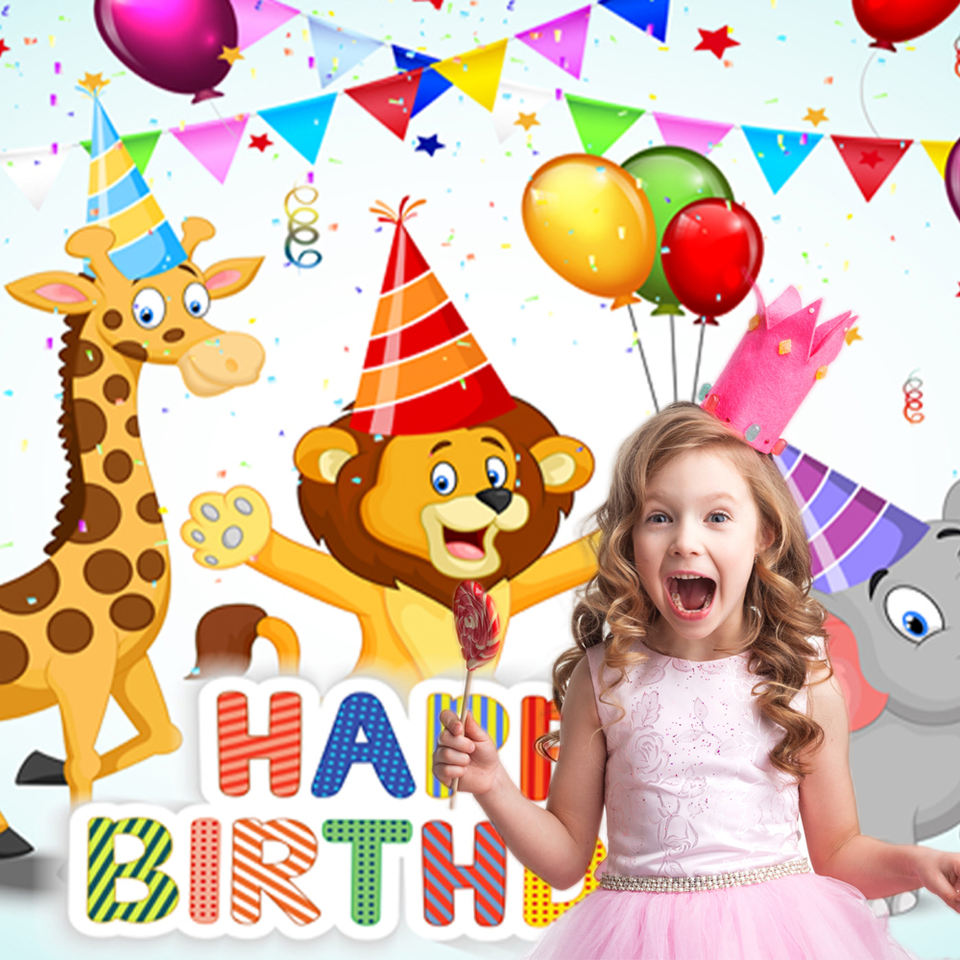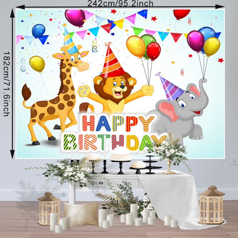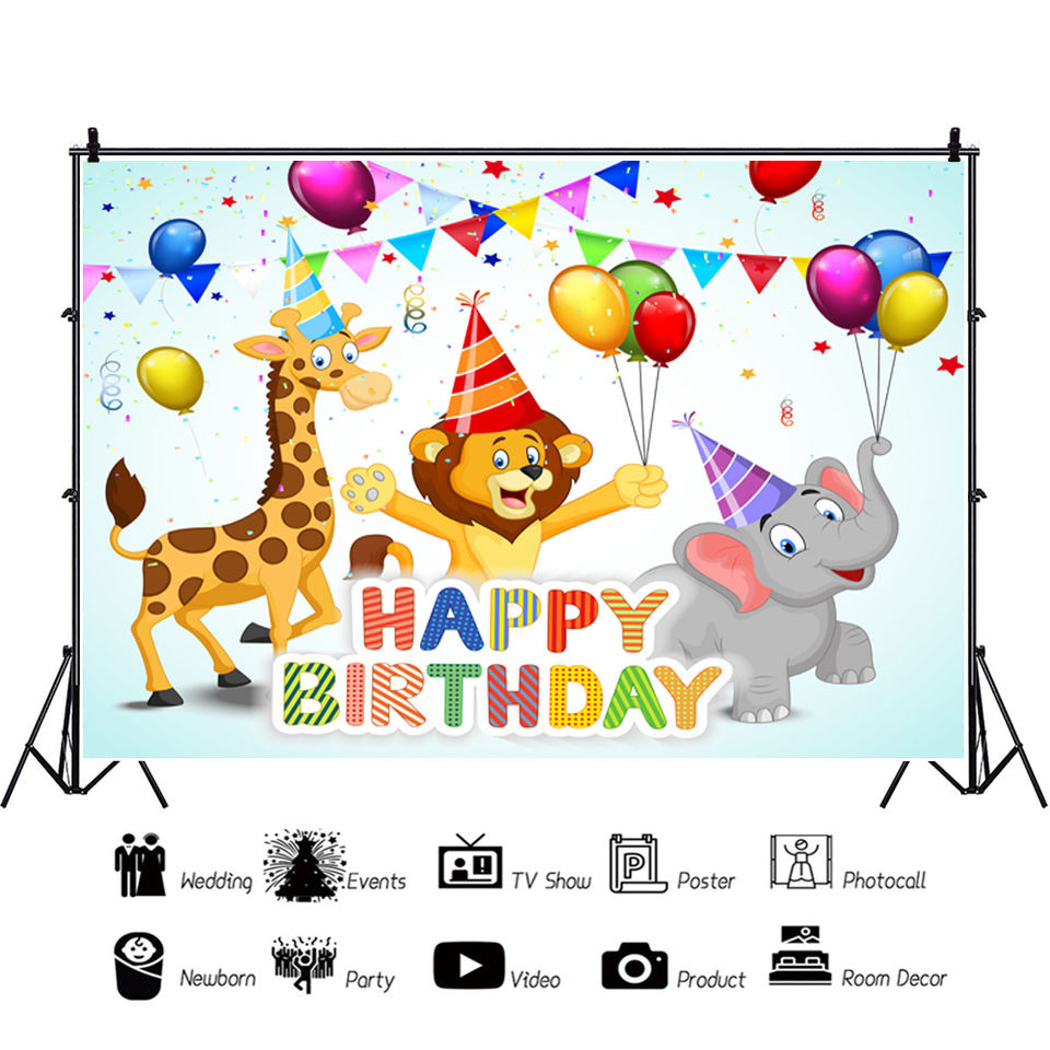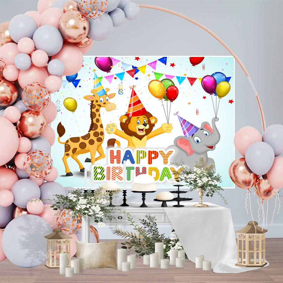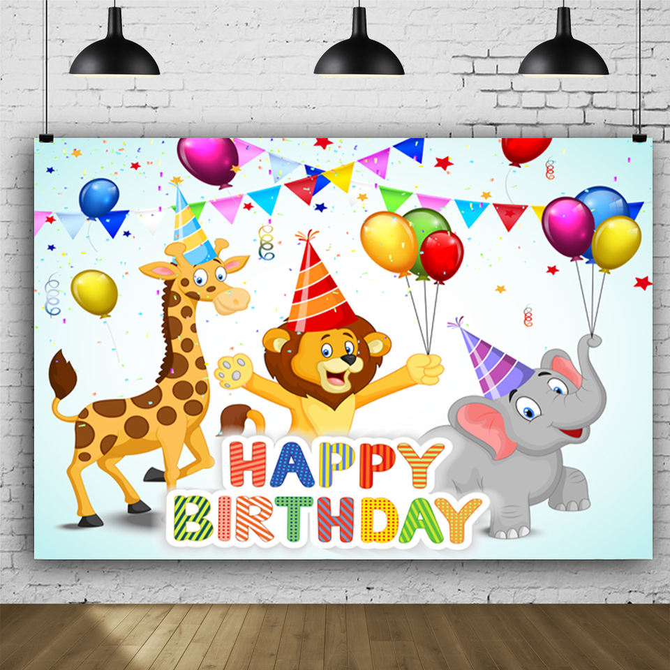 Leone giraffa elefante e palloncino buon compleanno sfondo perfetto per la festa di compleanno anniversario parete Banner decorazione