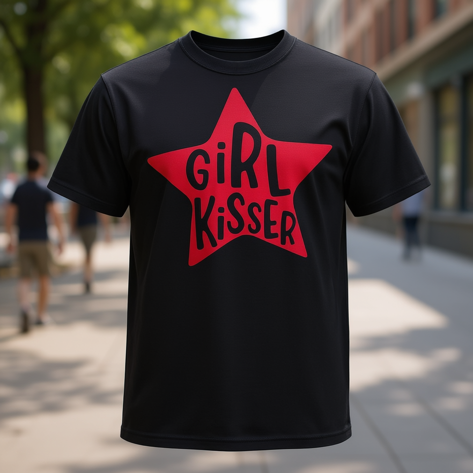 T-shirt nera con design Girl Kisser Star, abbigliamento casual unisex
