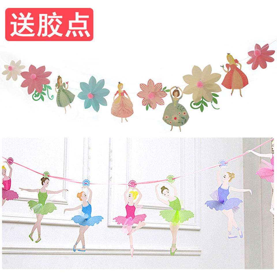 Ragazza ragazza principessa festa di compleanno banchetto sfondo palla di velluto balletto ragazza che tira fiori piccola bandiera fata decorazioni