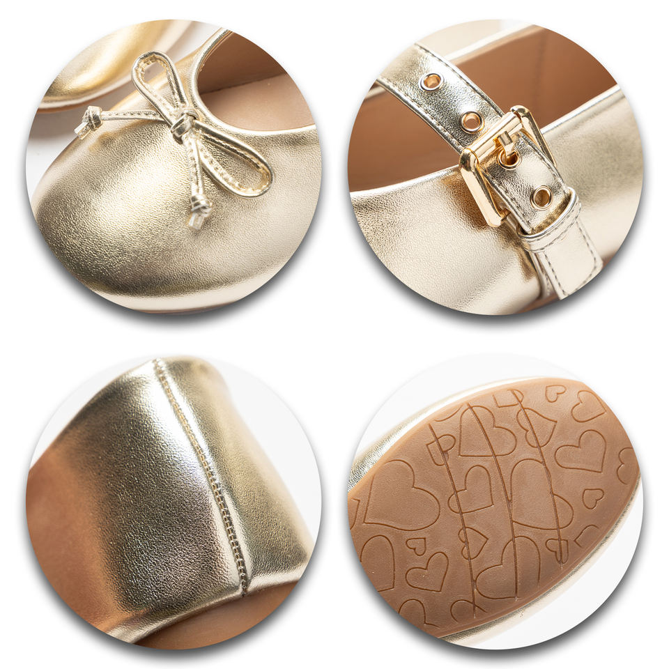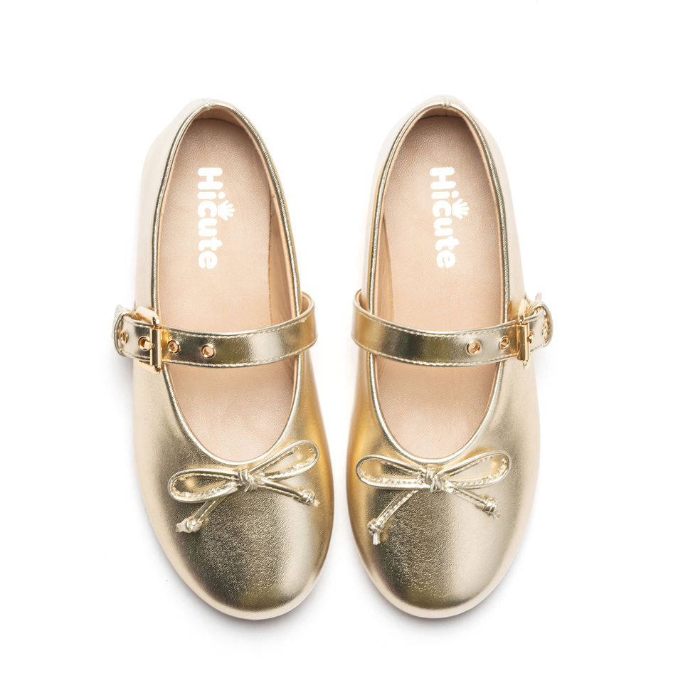 Scarpe da bambina stile principessa, Mary Jane oro metallizzato con fiocco, scarpe eleganti per feste, ideali per completi da bambina
