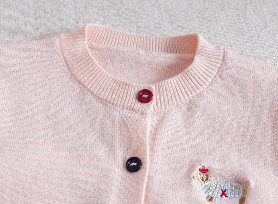 Cardigan in maglia da bambina in cotone, ricamato con simpatico cucciolo, girocollo, monopetto, stile coreano, Collezione Primavera/Autunno 2026