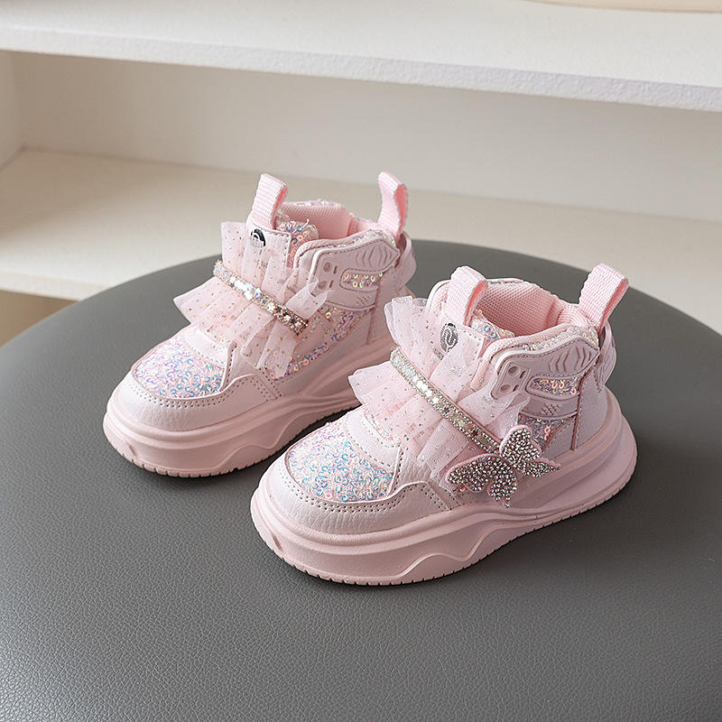 Girl's Basketball Style Sneakers Crystal Board Shoes for Children's Summer Fashion for Spring and Autumn
