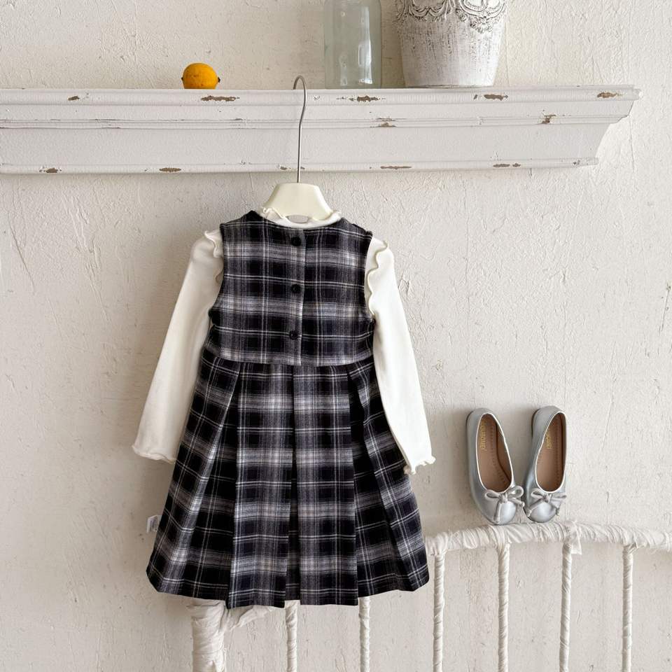 Gilet a scacchi da bambina vestito da bambina autunno 2025 nuovo arrivo gilet stile Chic da bambina vestito da bambina