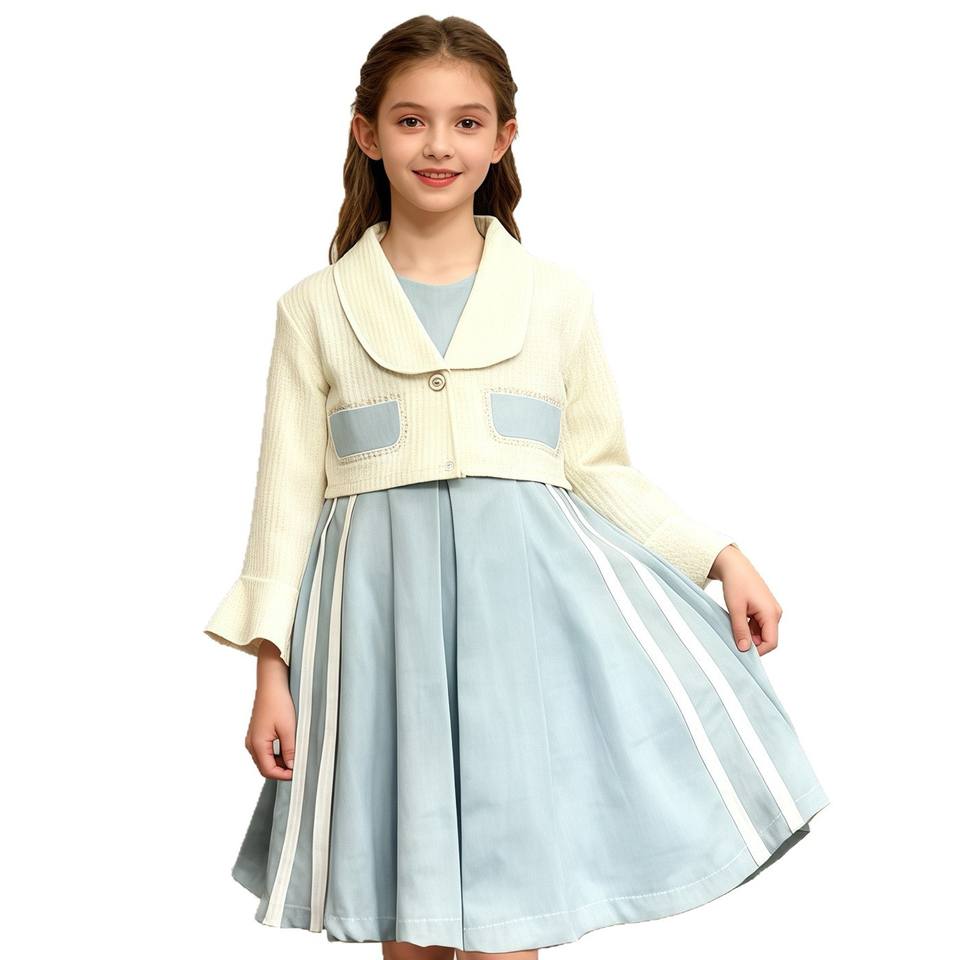 Nuovo Arrivo Primavera 2025 per Bambine, Cardigan con Bottoni a Maniche Lunghe in Stile Occidentale, Abito Principessa a Due Pezzi Lunghezza al Ginocchio