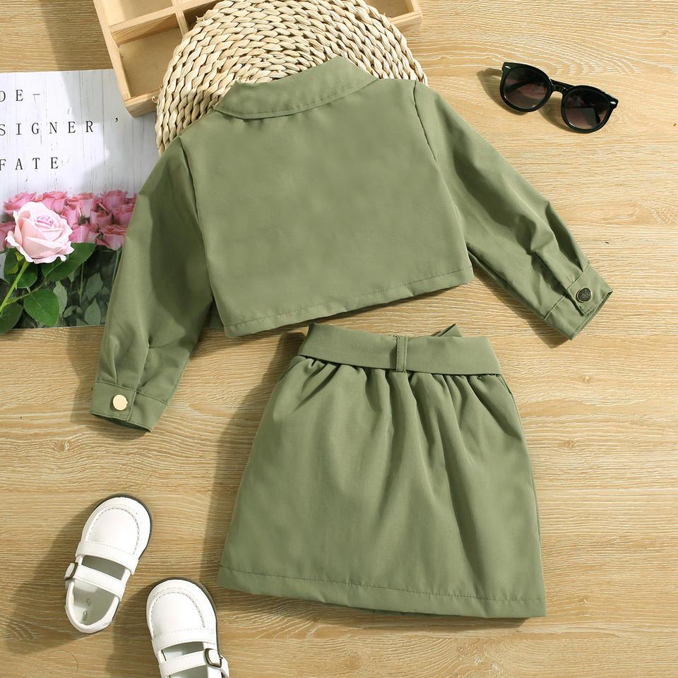 Girls 90-130cm Casual Solid Style 2-Piece Set Long Sleeve Short Lapel Jacket Top & A-line Skirt with Bow for Spring/Autumn