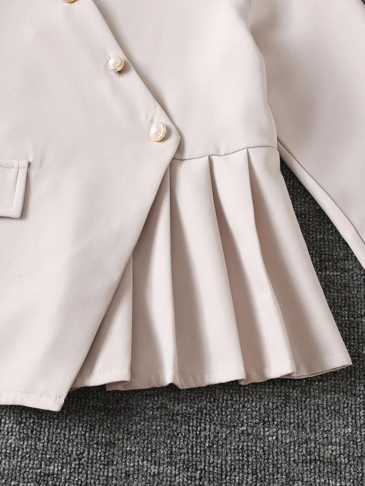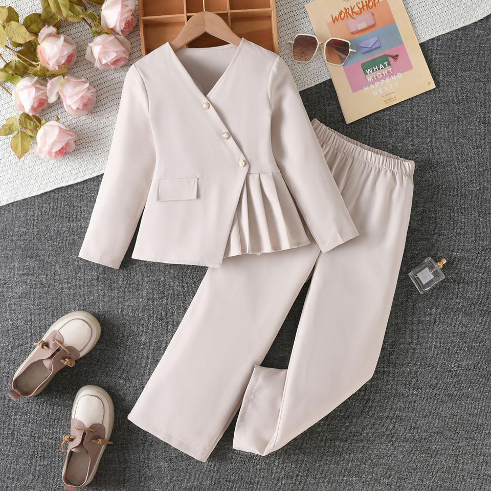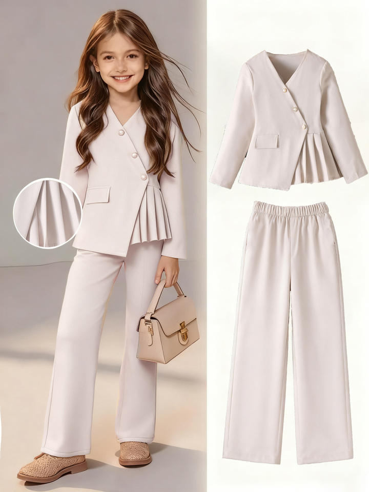 Completo Casual da Bambina Due Pezzi Bianco con Giacca dal Design Asimmetrico e Pantaloni Lunghi per l'Autunno