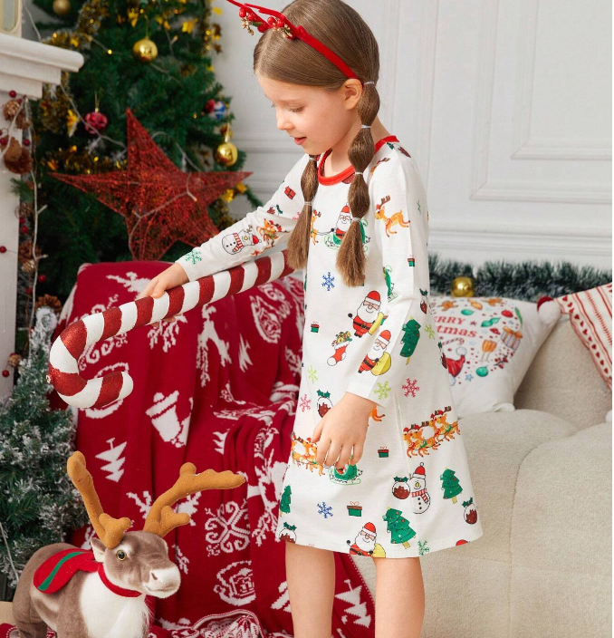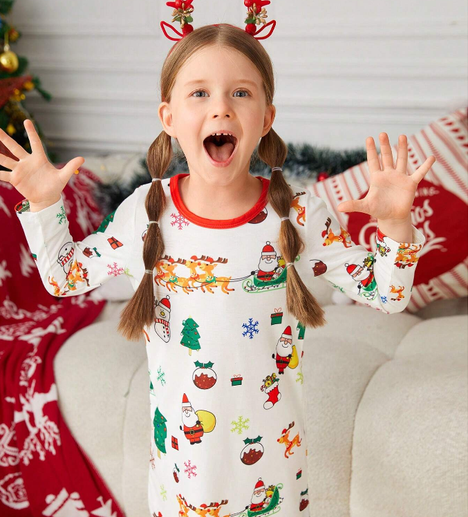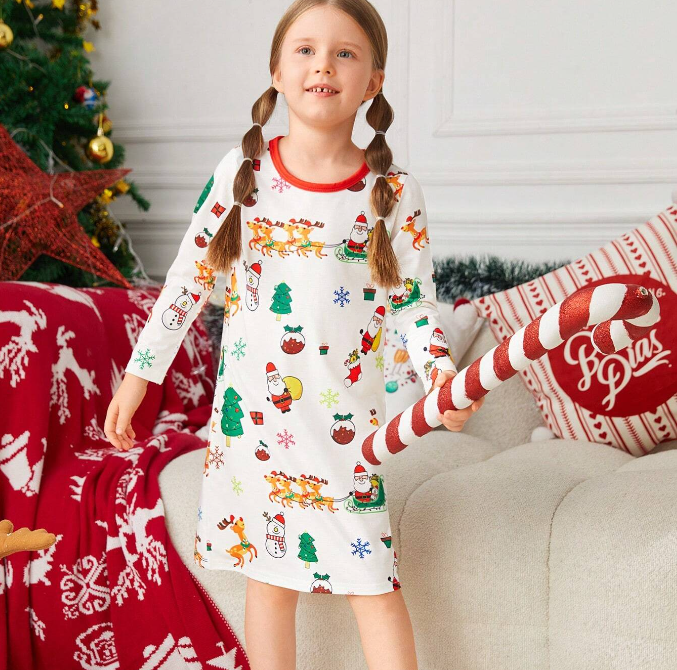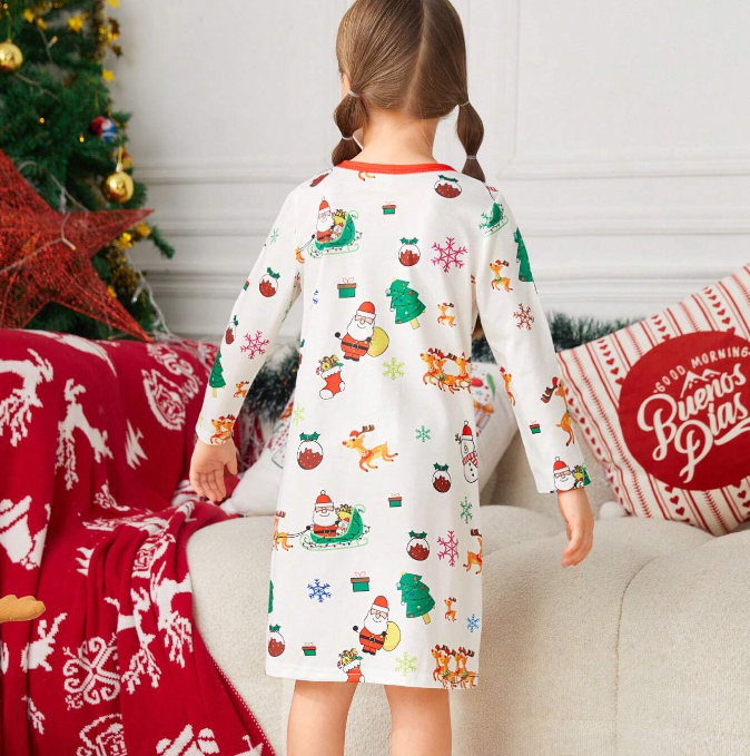 Camicia da Notte Natalizia con Stampe Cartoon per Ragazze, Coordinati Famiglia, Graziosi Completi da Notte per Donne
