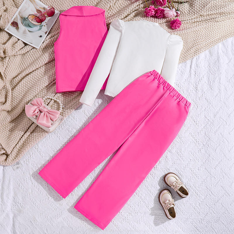 Completo per Bambine Stile Europeo e Americano, Nuovo Elegante Completo Autunnale in Misto Cotone Tinta Unita con Giacca a Maniche Lunghe e Pantaloni