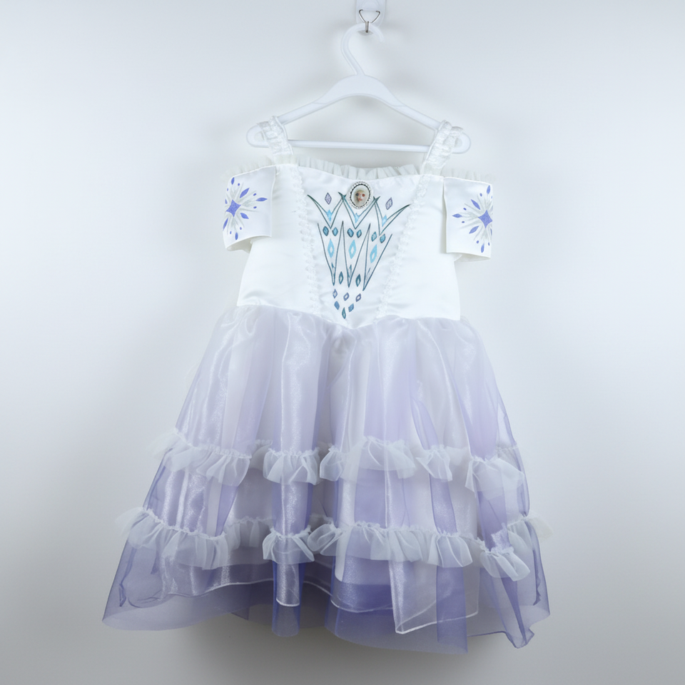 Set Vestito da Principessa Elsa per Bambine con Gonna in Tulle e Stampa Fiocchi di Neve, Costume per Halloween, Carnevale e Feste