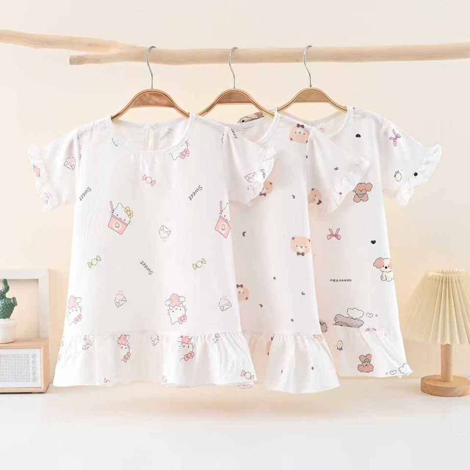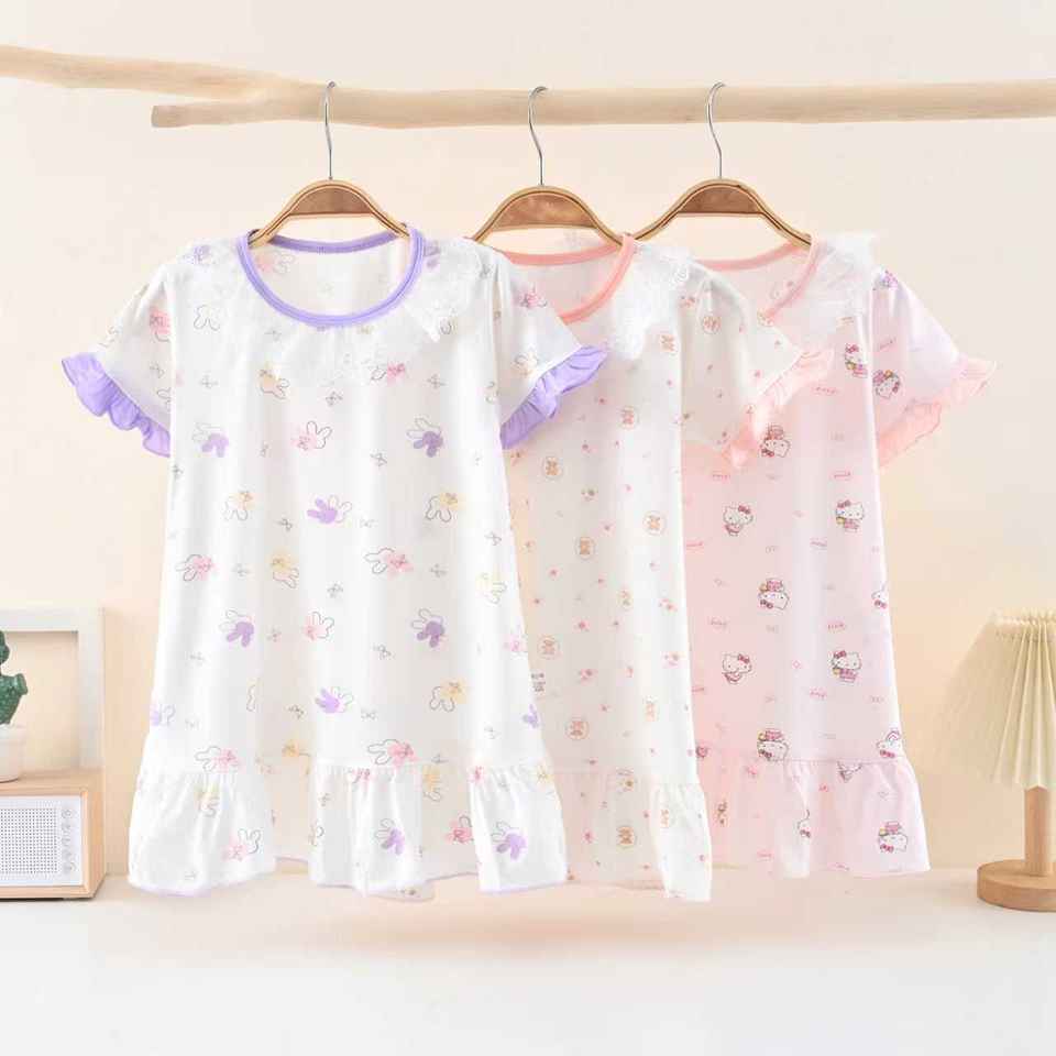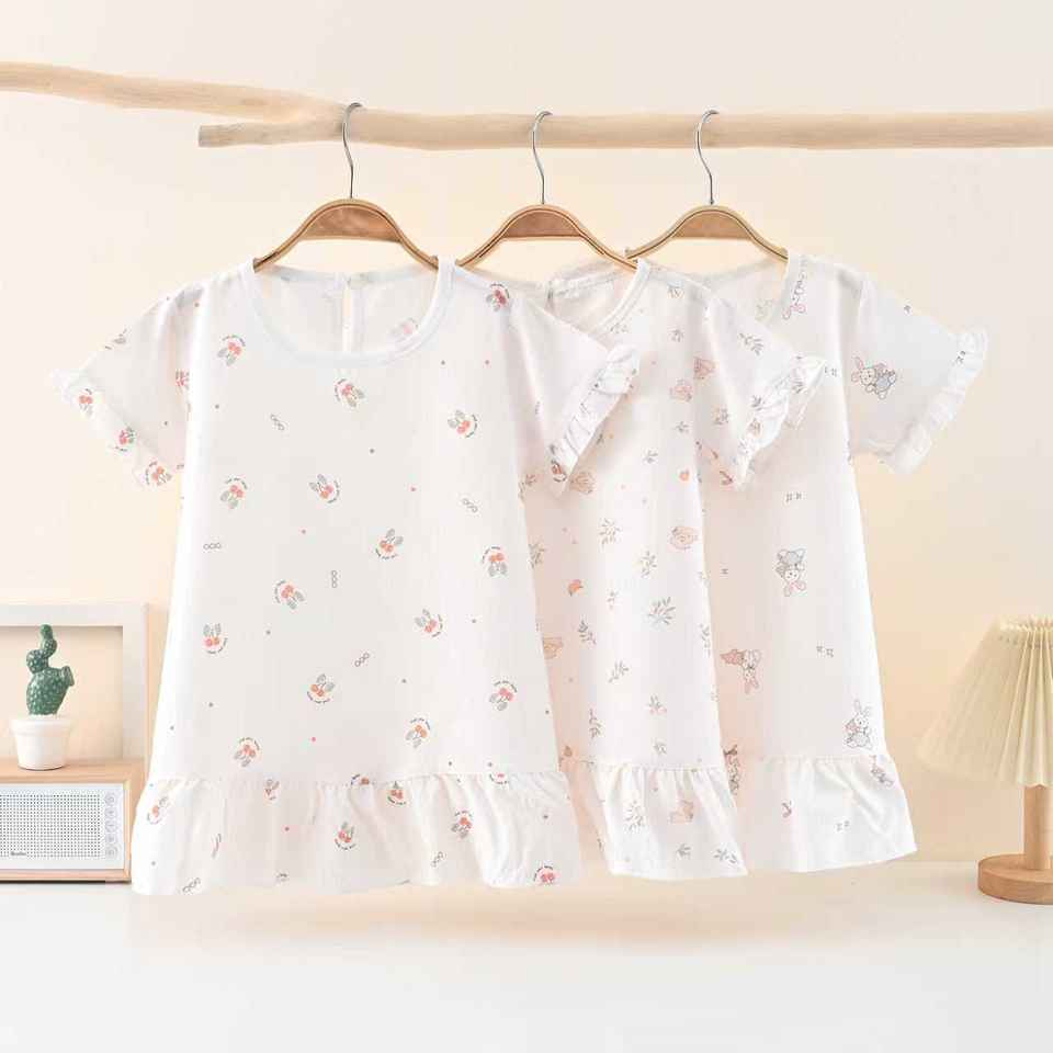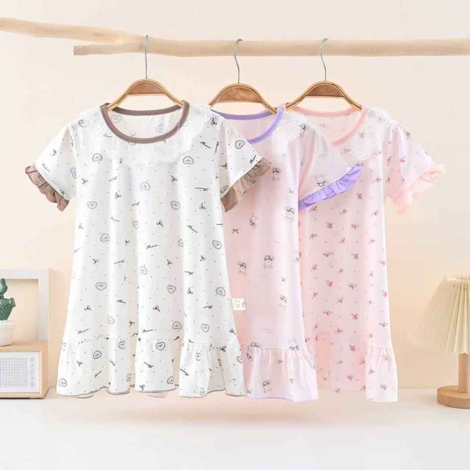 Camicia da Notte Estiva per Ragazze in 100% Cotone Morbido con Stampa Floreale e Polsini in Pizzo, Traspirante