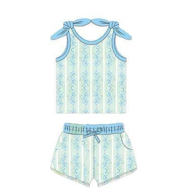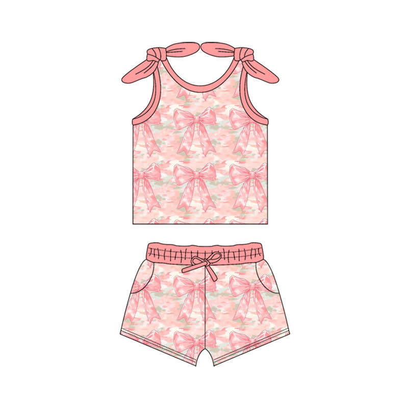 Set di pantaloncini floreali da ragazza: spalla in pizzo con stampe multiple, serie di abbigliamento estivo per bambini dolce e carina