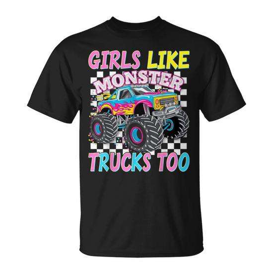 Maglietta Girls Like Monster Trucks Too Nera per adulti unisex