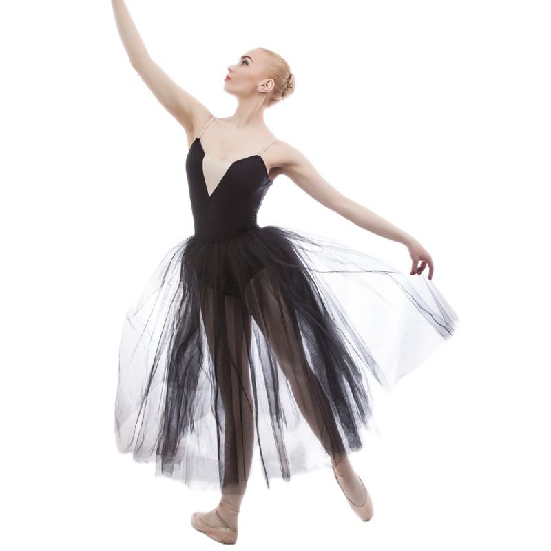 Girls Long Romantic Black Ballet Dance Tutu Soft Tulle Dress 17002-2