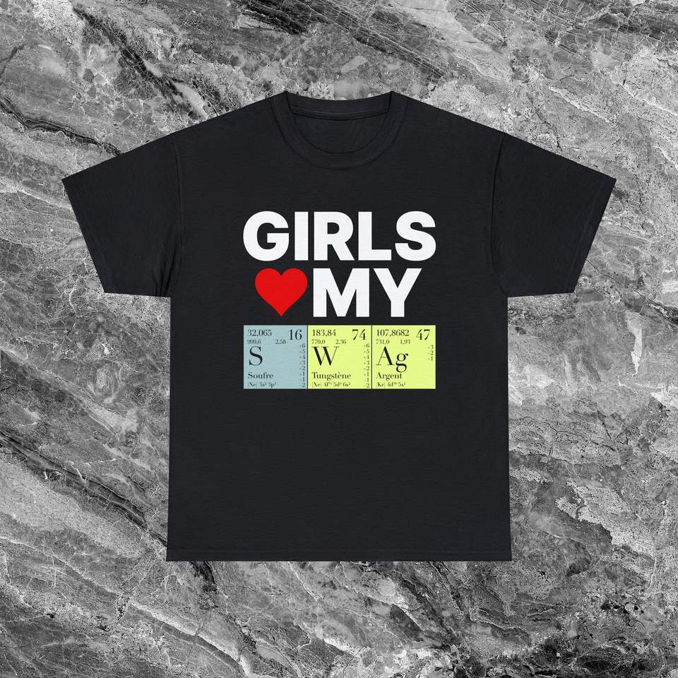 Maglietta da ragazza con scritta 'Love My Swag Science Chemistry', divertente, meme, scherzosa, imbarazzante, inadatta.