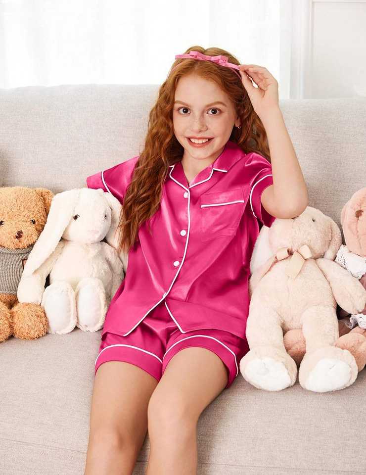 Girls Pajamas Silky Satin Pajama Sleepwear Button Down Kids Pyjamas Set Loungewear Girls Nightgown