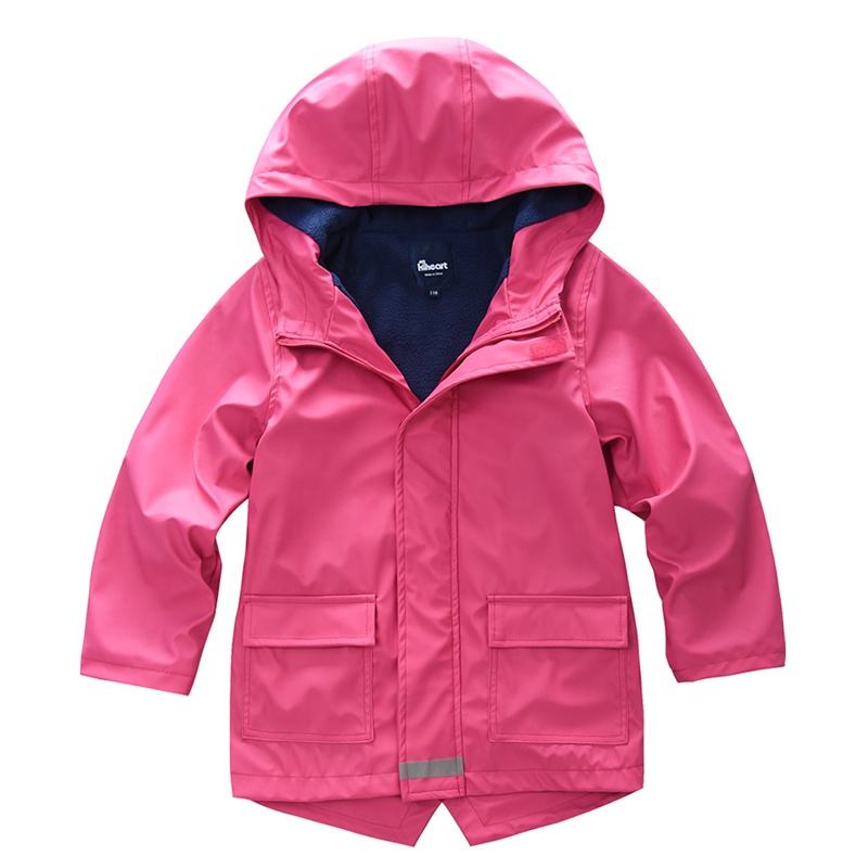 Product name:Girls Rain Jacket Fleece Lined Coat Children PU Rain Jacket