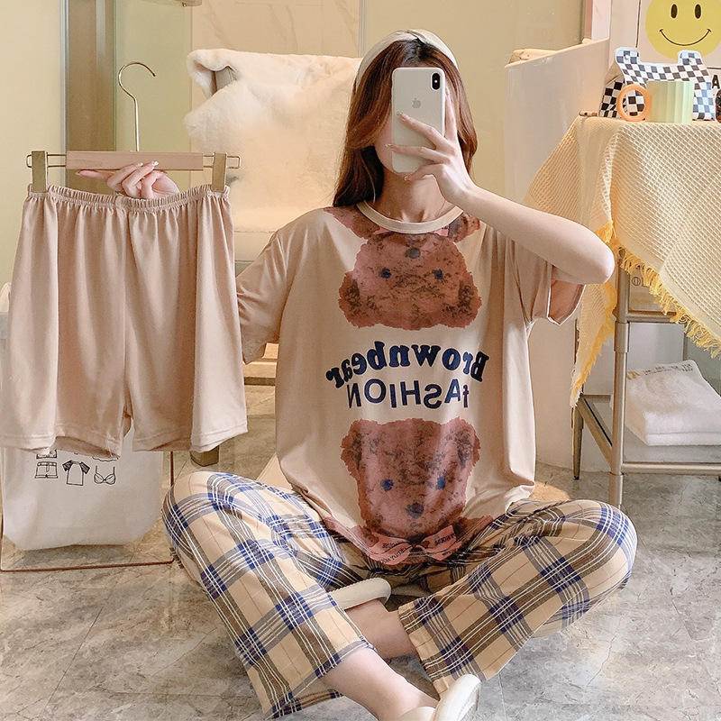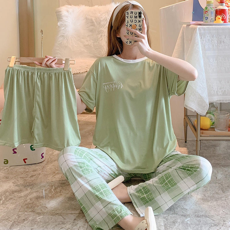 Pigiami da donna a manica corta da donna 3 pezzi Set camicie da notte pigiama donna a buon mercato Pjs Mujer pigiama da donna taglio semplice