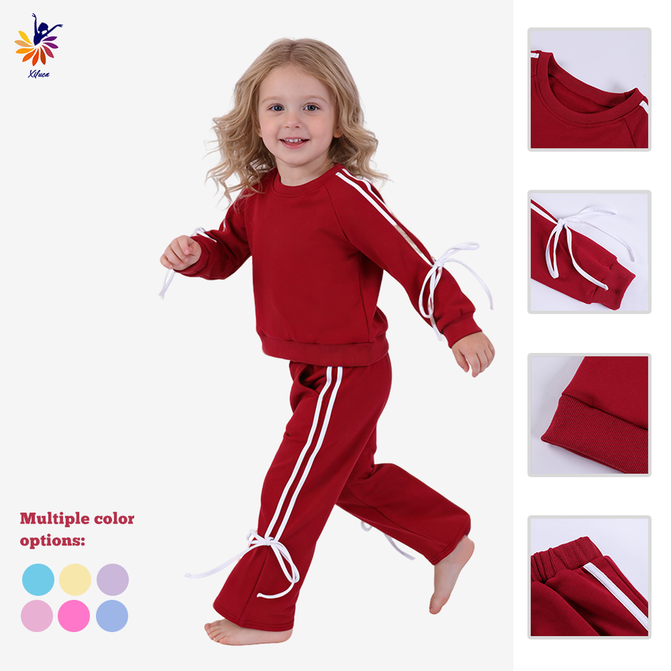Set Felpa con Cappuccio per Ragazze, Caldo per Autunno e Inverno, Design con Fiocco, Strisce Laterali, Maniche Lunghe, Pantaloni Larghi, Consegna Rapida, Outfit Casual per Bambini