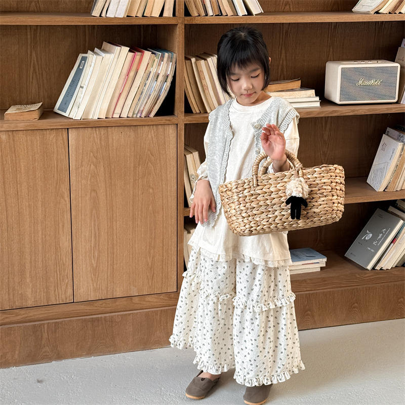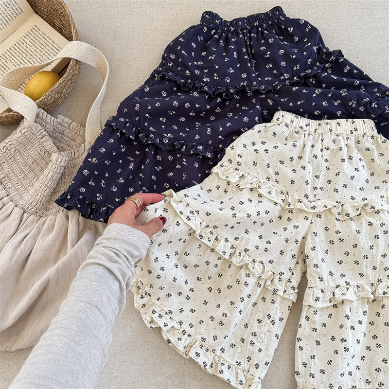 Pantaloni corti ammorbiditi antizanzare con volant e gamba larga a fiori per bambine, primavera/estate, taglie 80-130 cm