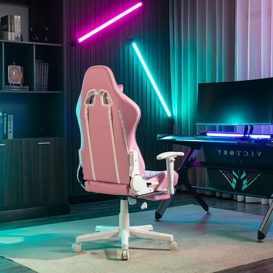 Girls Women Bedroom Cute Lovely Furniture Computer Armchair Lovely Ergonomics Leather Pink Gaming Chair with Footrest