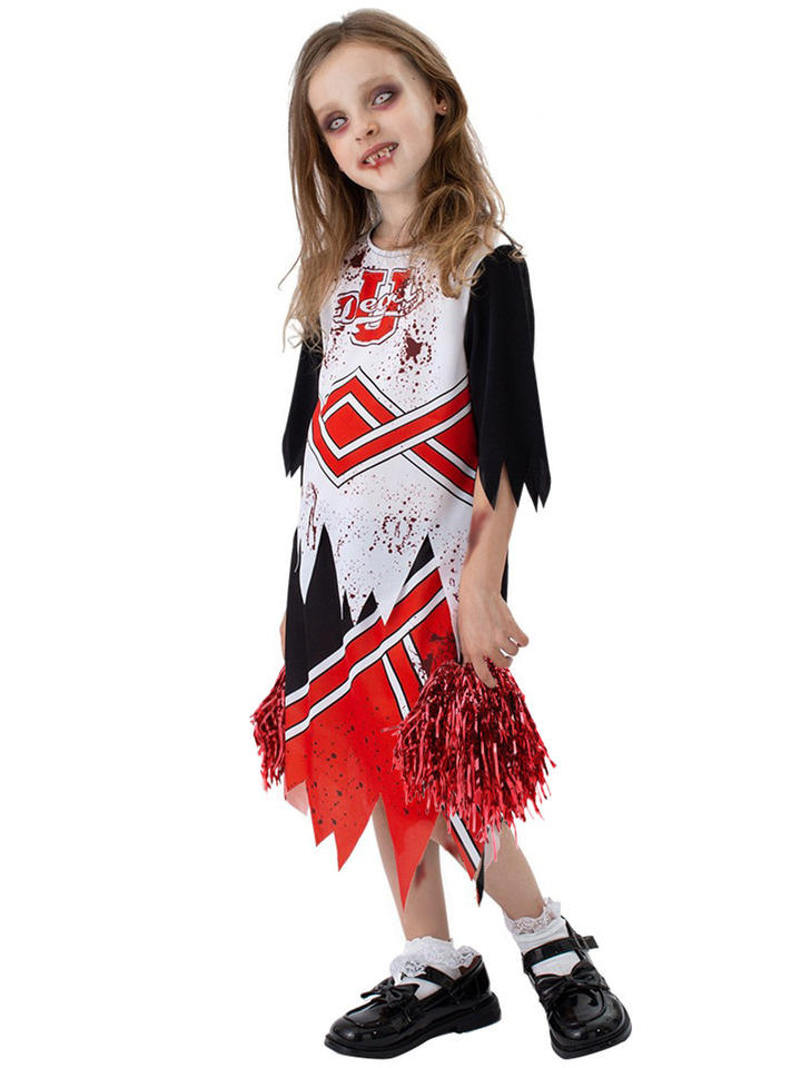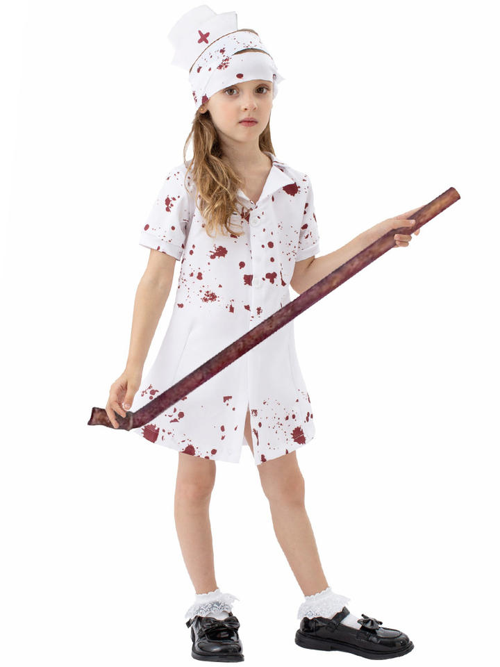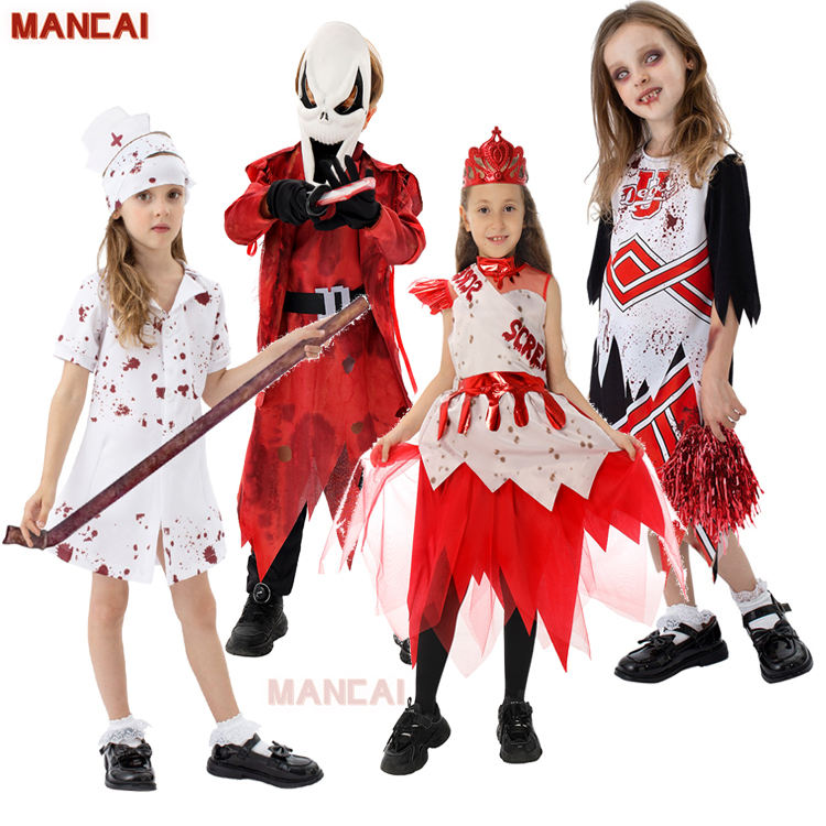 Girls Zombie Nurse Halloween Costume Scary Blood Killer Nurse Cheerleading Uniform Horror Fancy Dress Kids Costumes
