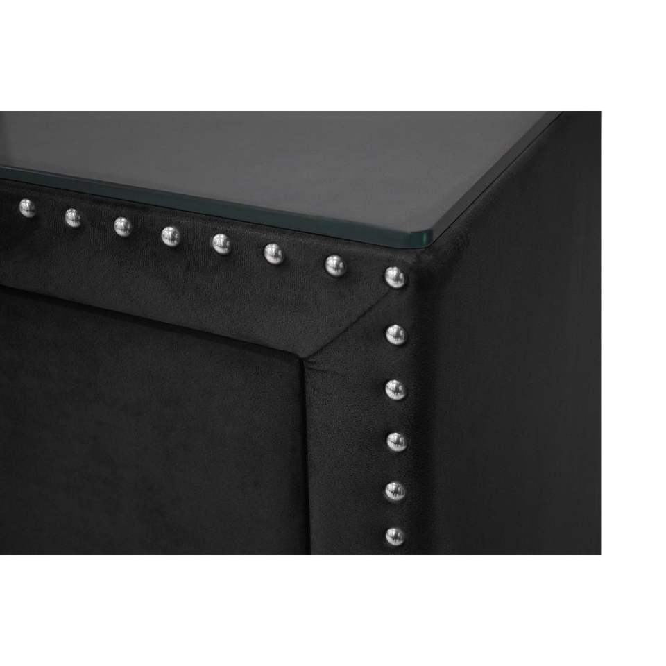 Stile Glam 1pc due cassetti comodino in tessuto imbottito con Nailhead in vetro temperato legno metallo mobili camera da letto
