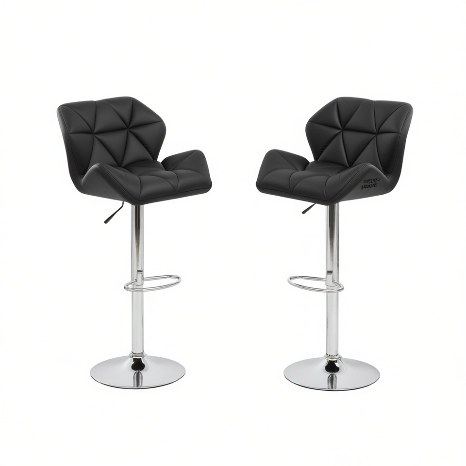 Glasgow Contemporary Tufted Bar Stools Set Of 2 Adjustable Height Hydraulic Black Chrome Base Modern Design