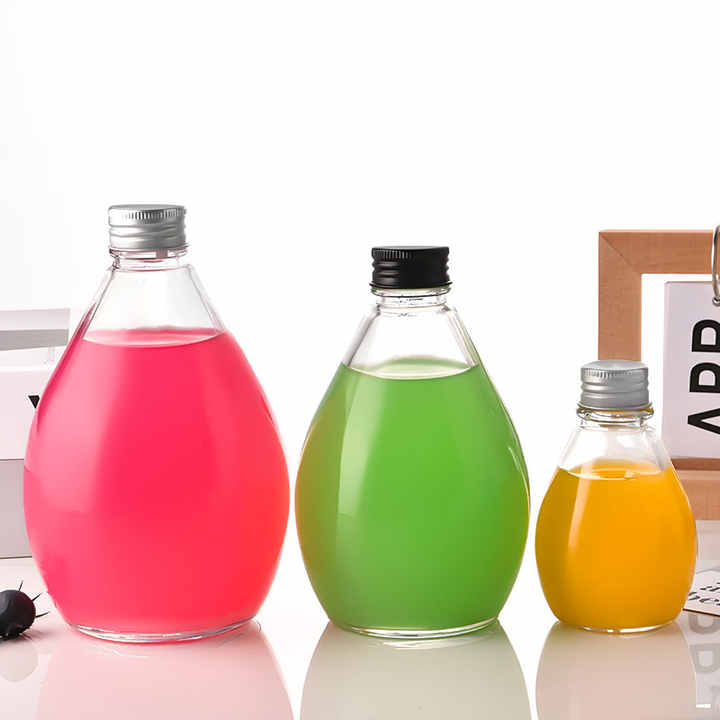 Bottiglia in Vetro per Latte, Caffè e Bevande 260ml 350ml 500ml, a Forma di Goccia d'Acqua, Trasparente, Vuota, per Succhi, con Tappo a Vite in Alluminio