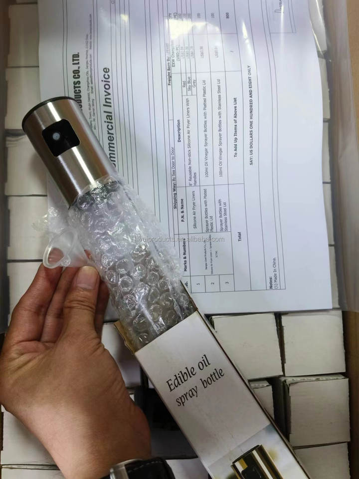 Glass Olive Oil Sprayer Mister 100ml Stainless Steel Leak-proof Spray Bottle Oil Dispenser for Kitchen Cooking Salad Bbq Baking