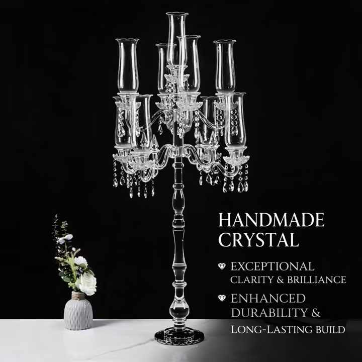 Candelabro Grande in Cristallo a 9 Bracci con Tubi in Vetro Appesi per Centrotavola Decorativo per Matrimoni Eventi e Feste