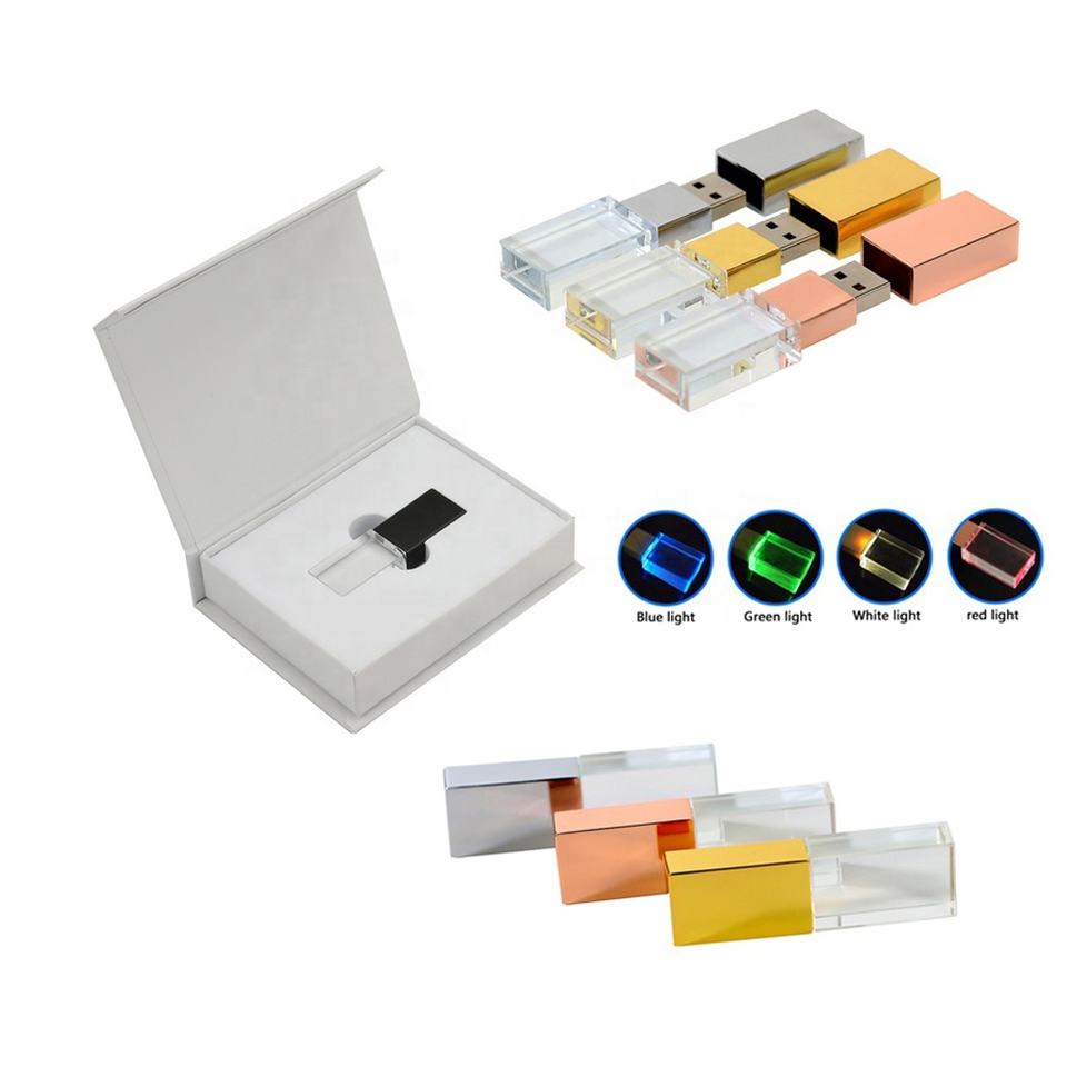 Usb in vetro 3.0 stick 3D inciso Logo personalizzato 4GB 8GB 16GB vetro chiavetta 2.0 scatola bianca Pen Drive 32GB 64GB Pen Drive
